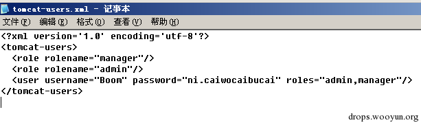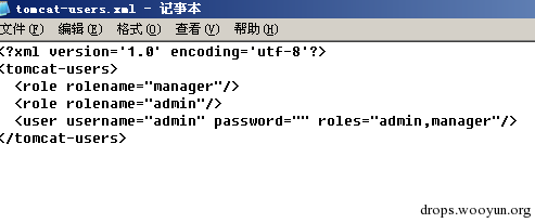 然后来看一下Tomcat安装版默认的tomacat-users.xml配置文件