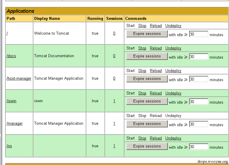 我们将一个jsp格式的webshell用WinRar打包然后将其后缀改名为WAR(本例为no.war),这样;一个WAR包就生成了。最后将其上传到服务器,可以看到在Tomcat的后台中多了一个名为/no的目录。
