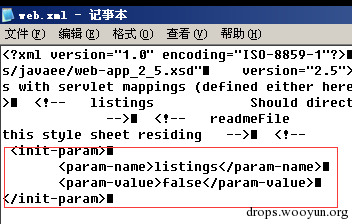 在IIS中如果设置不当,就会列出Web当前目录中的所有文件,然而在Tomcat也不例外。如果浏览者可以在客户端浏览Web目录,那将会存在较大的安全隐患,因此我们要确认Tomcat的设置中禁止列目录。\conf\web.xml下