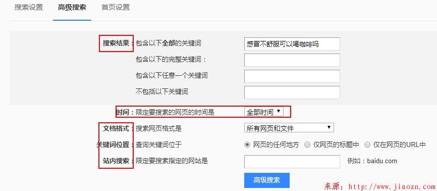 高级搜索: 设置网页时间
