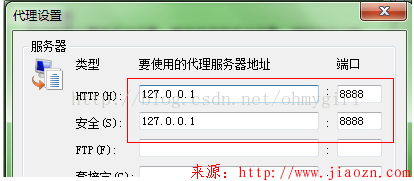 按钮打开目标浏览器,这样就能监控到该浏览器所有的HTTP请求了,但是你不是这样操作的,那么你就必须修改浏览器的代理,因为如果你的浏览器在开启fiddler之后没有设置相应的代理,则fiddler是无法捕获到HTTP请求的。如下是启动Fiddler之后,IE浏览器的代理设置: