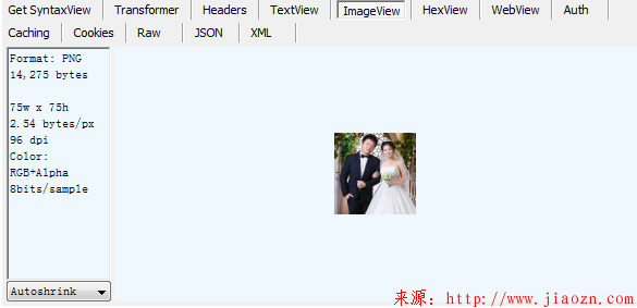JPG 格式使用 ImageView 就可以看到图片,选择一条Content-Type是image/jpeg的回话,点击TextView