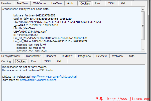 Cookies标签可以看到请求的cookie和响应的set-cookie头信息。
