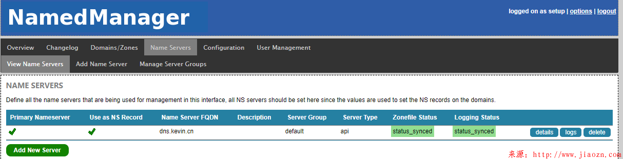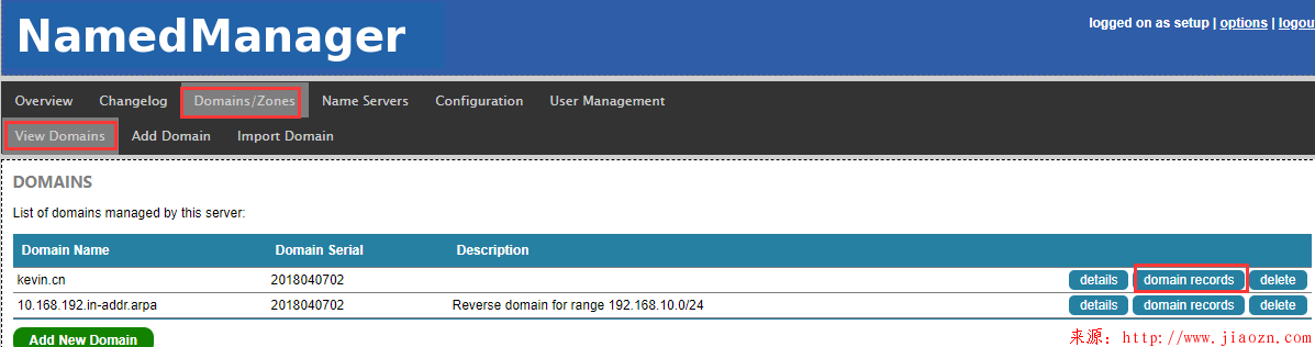 NamedManager 是一个基于Web的DNS管理系统,可用来添加、调整和删除DNS的zones/records数据。它使用Bind作为底层DNS服务,提供一个现代Ajax的Web界面,支持 IPv4和IPv6。该应用程序很稳定,在生产环境中使用没有任何问题。过多的介绍在此就不做说明了,下面说下NamedManager环境部署过程: