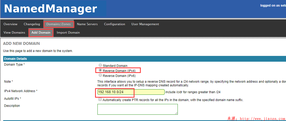 访问http://192.168.10.206/namedmanager,默认用户名和密码(setup,setup123)。不要忘记在用户管理中修改用户名和密码。