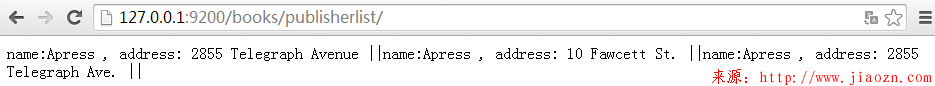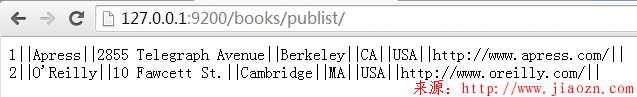 1 def publisher_list(request):2 return HttpResponse(Publisher.objects.order_by('name'))结果如下截图: