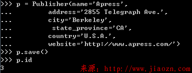 >>> p.name = 'Apress Publishing'>>> p.save()