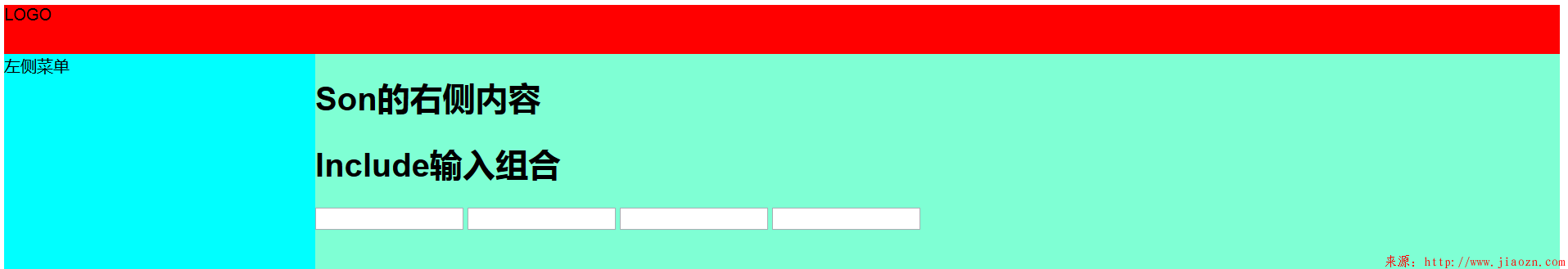 1 2 3 4 5 | <h1>Include输入组合</h1><input type="text" /><input type="text" /><input type="text" /><input type="text" /> |