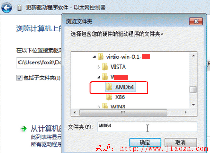 也就是找到上面第(2)步中放到windows_server_2008.iso镜像文件中的virtio-win-0.1-30驱动路径(“support“->”tools“->”virtio-win-0.1-30“->”win7(或wlh)“->”AMD64“)