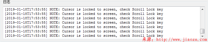 如未成功,查看日志消息,出现了“Cursor is locked to screen, check Scroll Lock key”的日志提示: