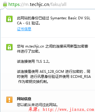 访问 https url 后,地址栏前面会有一个‘绿色小锁图标’,点击它可以查看到 TLS 版本信息