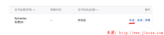 首先进行 “补全” 操作,填写自己的域名和基本信息