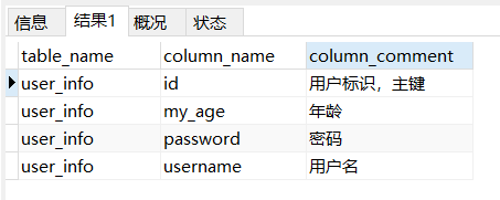 去掉 table_name 限定条件,即可查看指定库中的所有表信息