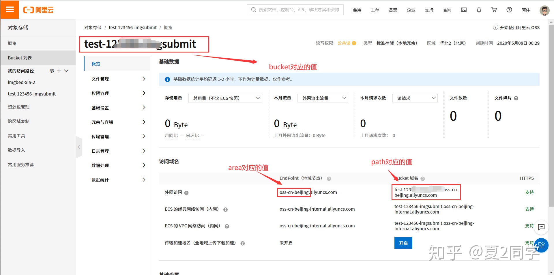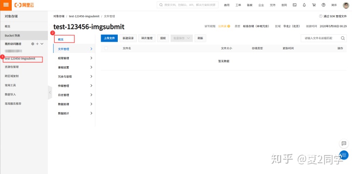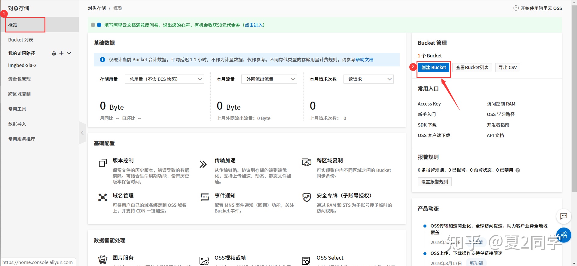 回到之前的oss对象存贮,点击之前创建的bucket,在点击概览。